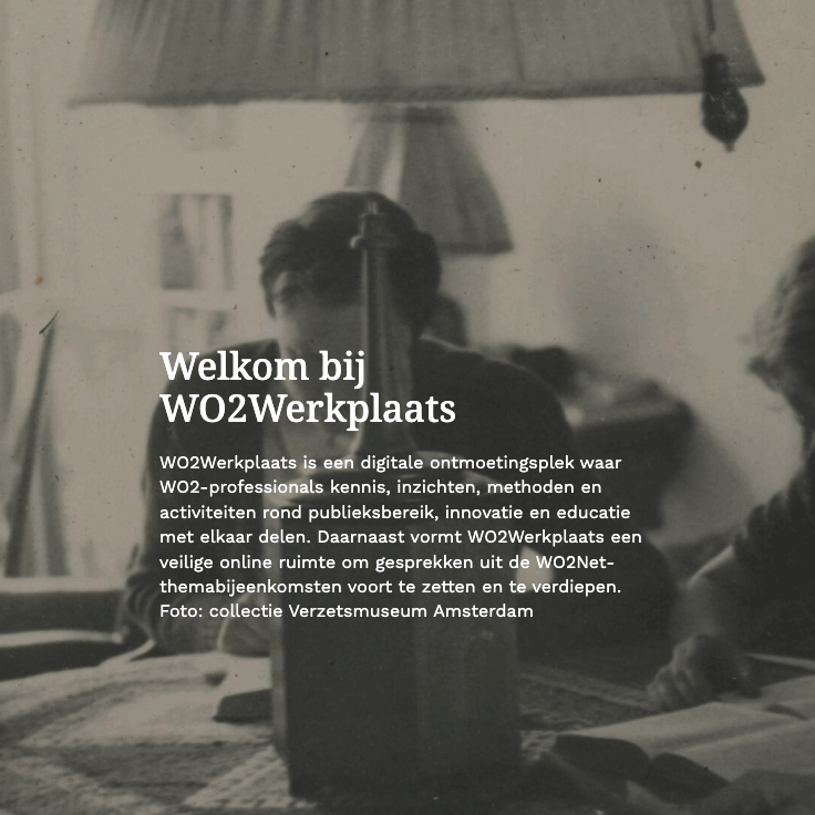 Stichting WO2Net is een kennis- en innovatiecentrum op het gebied van publieksbereik over de Tweede Wereldoorlog en de relevantie daarvan voor het heden. Ook zijn we gespecialiseerd in het verbinden, verrijken en presenteren van online collecties.